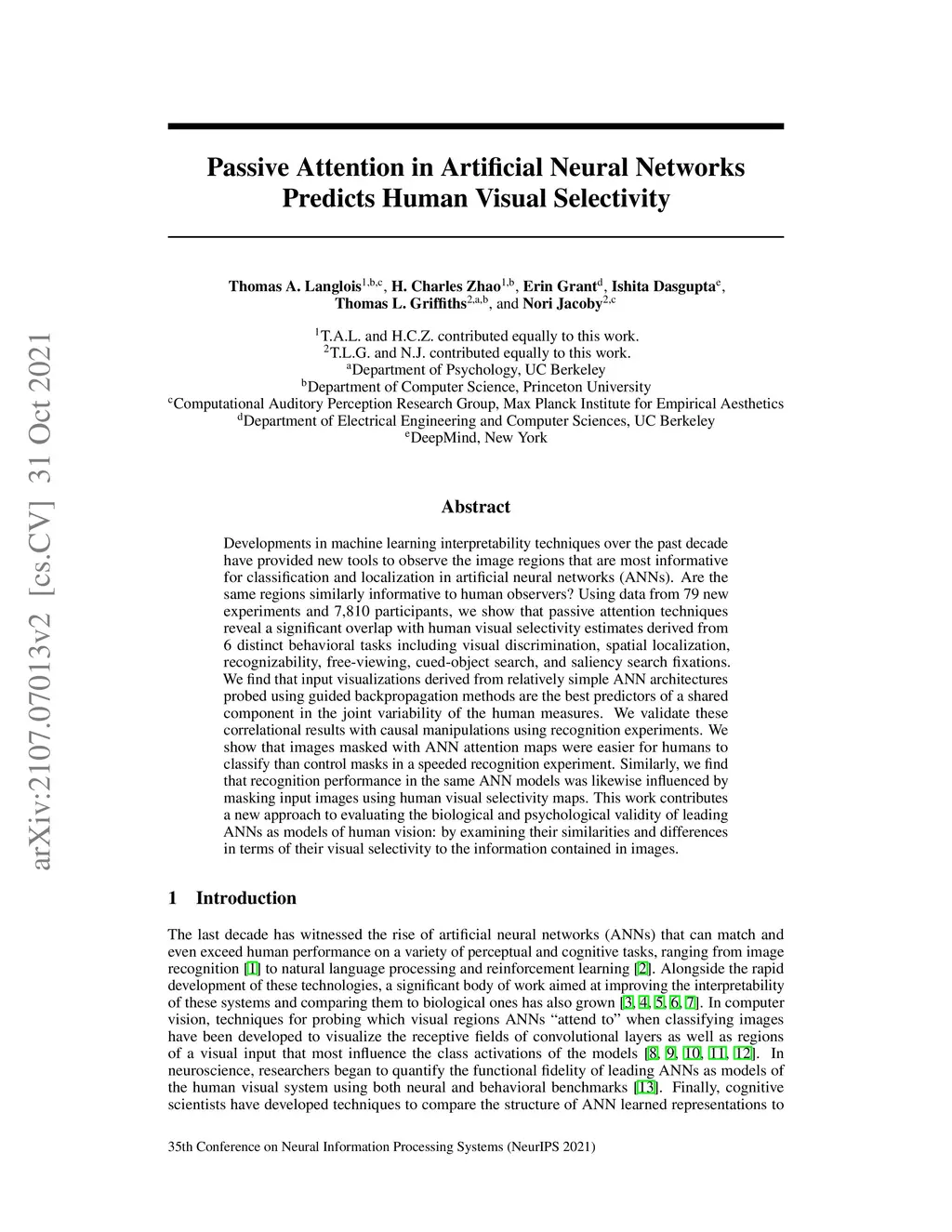 Passive Attention in Artificial Neural Networks Predicts Human Visual
