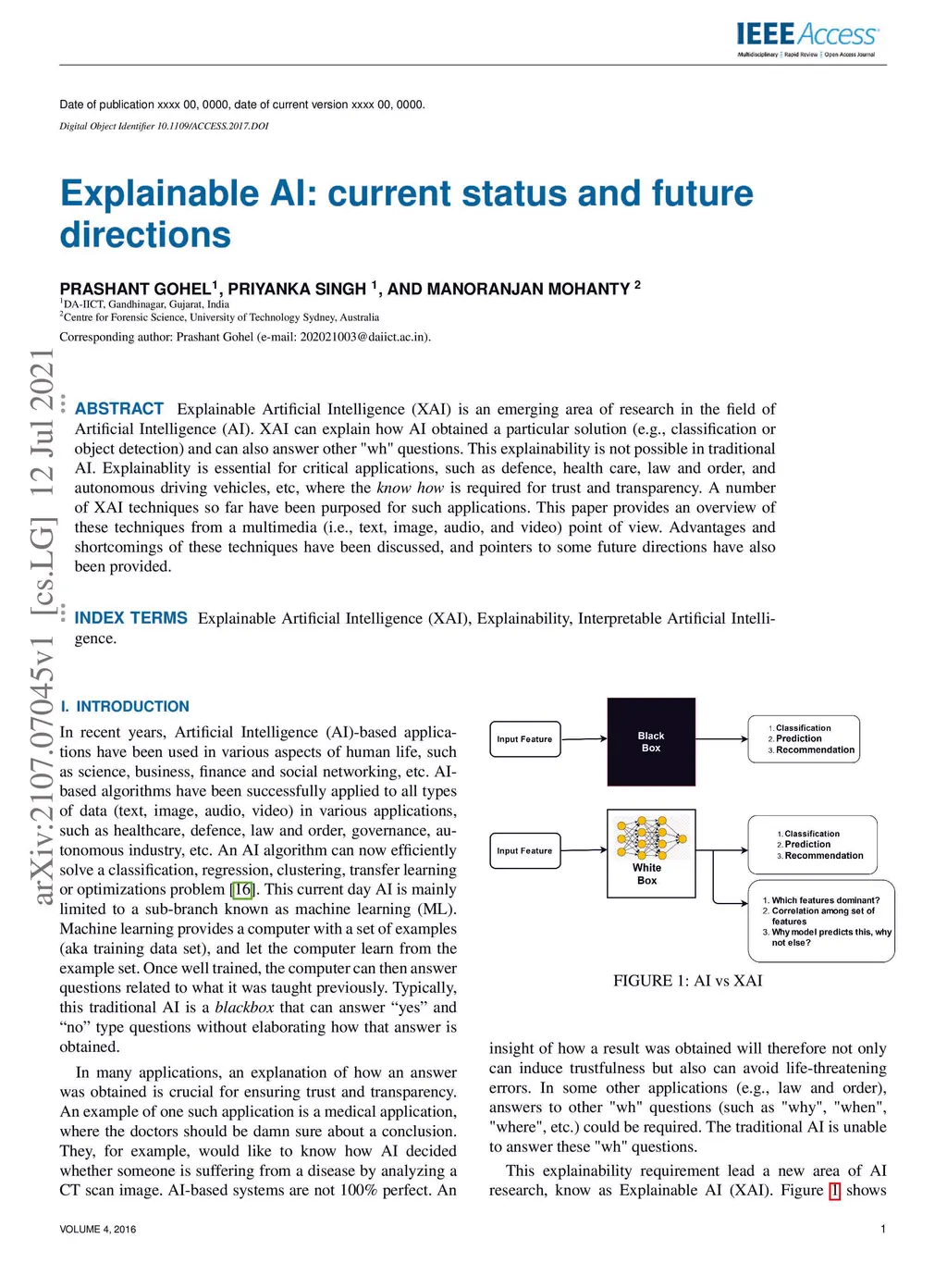 Explainable AI: current status and future directions