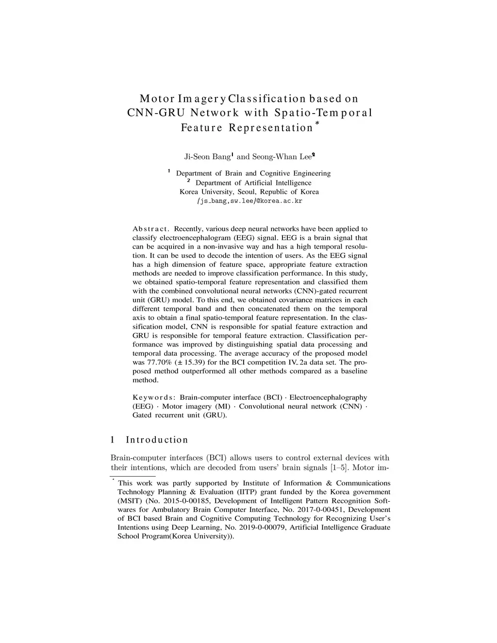 Motor Imagery Classification based on CNN-GRU Network with