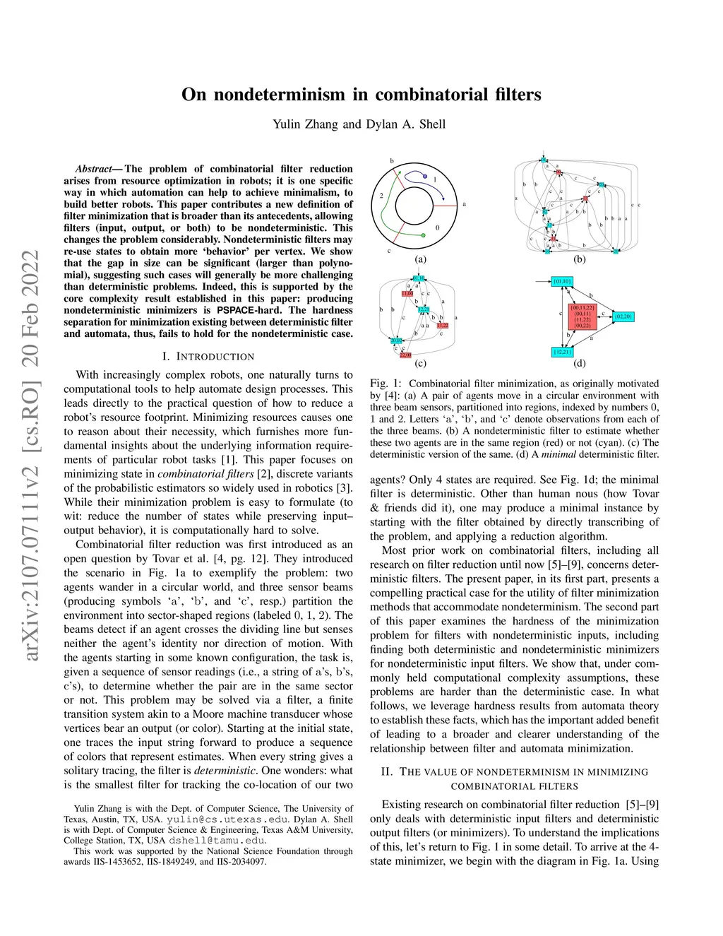 The problem of combinatorial filter reduction arises from questions of resource optimization in robots; it is one specific way in which automation can help to achieve minimalism, to build better, simpler robots. This paper contributes a new definition of filter minimization that is broader than its antecedents, allowing filters (input, output, or both) to be nondeterministic. This changes the problem considerably. Nondeterministic filters are able to re-use states to obtain, essentially, more 'behavior' per vertex. We show that the gap in size can be significant (larger than polynomial), suggesting such cases will generally be more challenging than deterministic problems. Indeed, this is supported by the core computational complexity result established in this paper: producing nondeterministic minimizers is PSPACE-hard. The hardness separation for minimization which exists between deterministic filter and deterministic automata, thus, does not hold for the nondeterministic case.