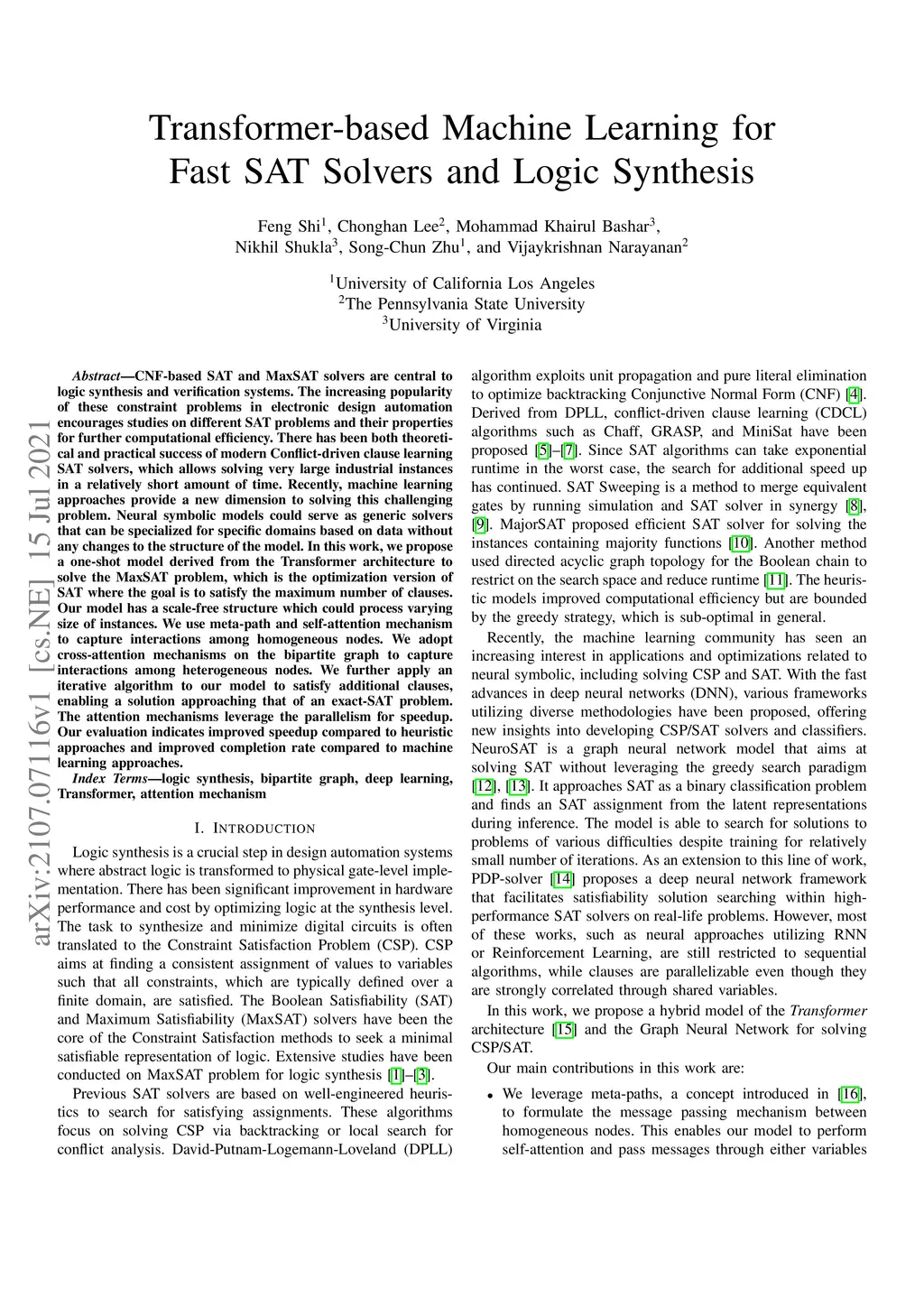 Transformer-based Machine Learning for Fast SAT Solvers and Logic