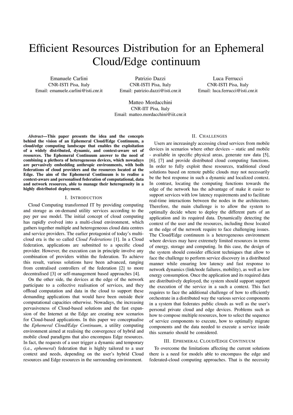 Efficient Resources Distribution for an Ephemeral Cloud/Edge continuum
