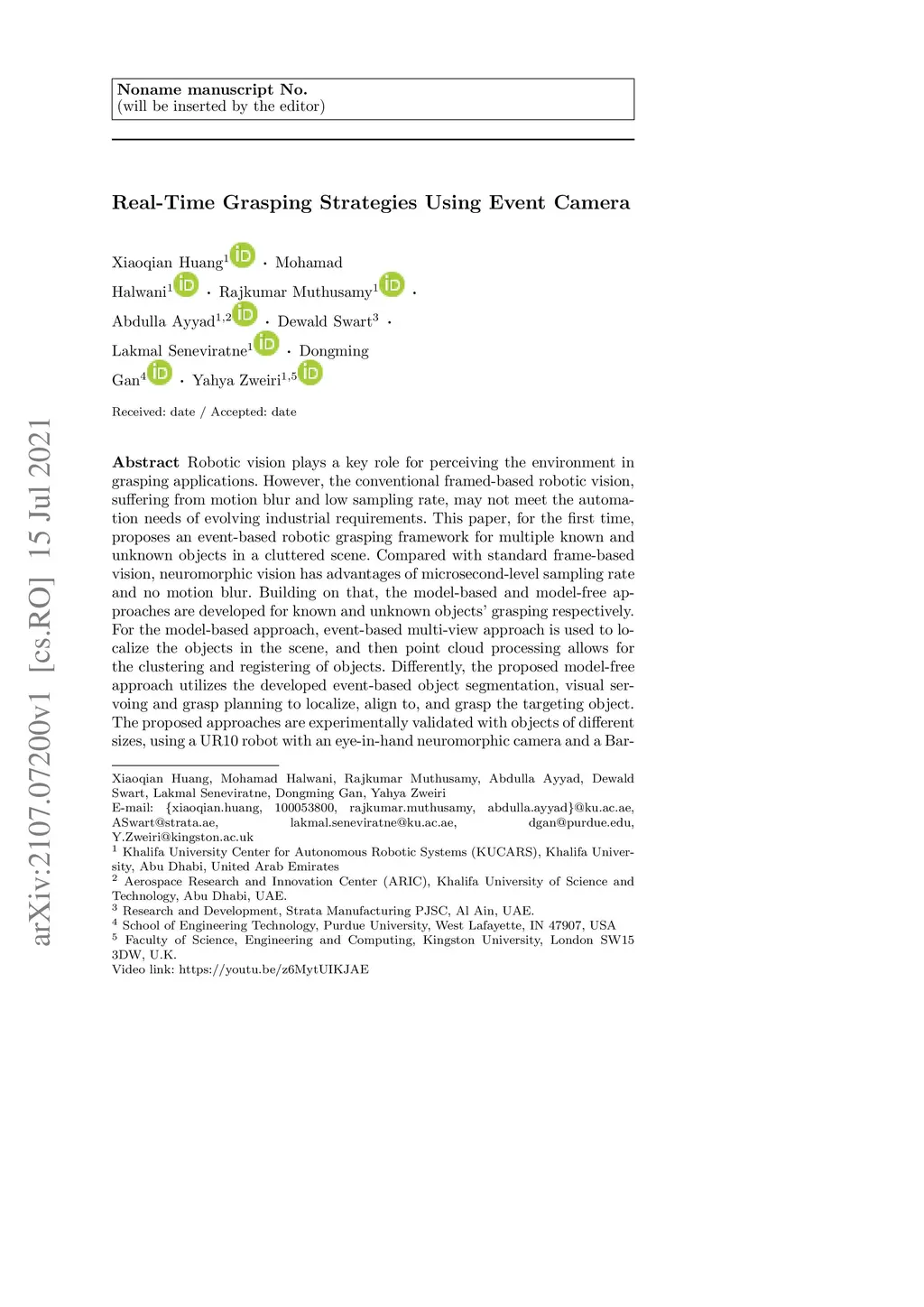 Real-Time Grasping Strategies Using Event Camera