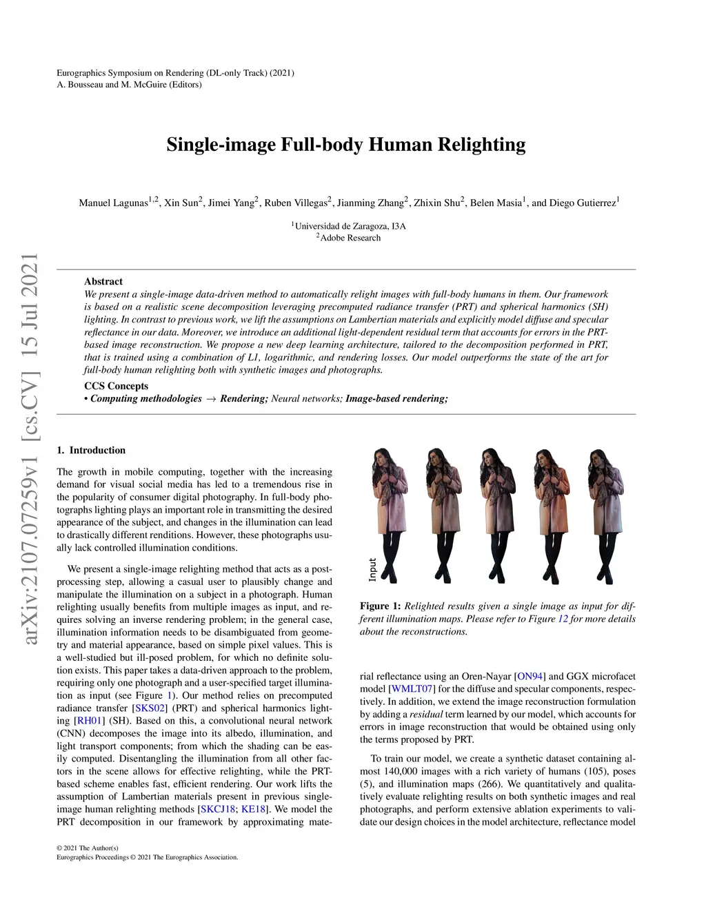We present a single-image data-driven method to automatically relight images with full-body humans in them. Our framework is based on a realistic scene decomposition leveraging precomputed radiance transfer (PRT) and spherical harmonics (SH) lighting. In contrast to previous work, we lift the assumptions on Lambertian materials and explicitly model diffuse and specular reflectance in our data. Moreover, we introduce an additional light-dependent residual term that accounts for errors in the PRT-based image reconstruction. We propose a new deep learning architecture, tailored to the decomposition performed in PRT, that is trained using a combination of L1, logarithmic, and rendering losses. Our model outperforms the state of the art for full-body human relighting both with synthetic images and photographs.