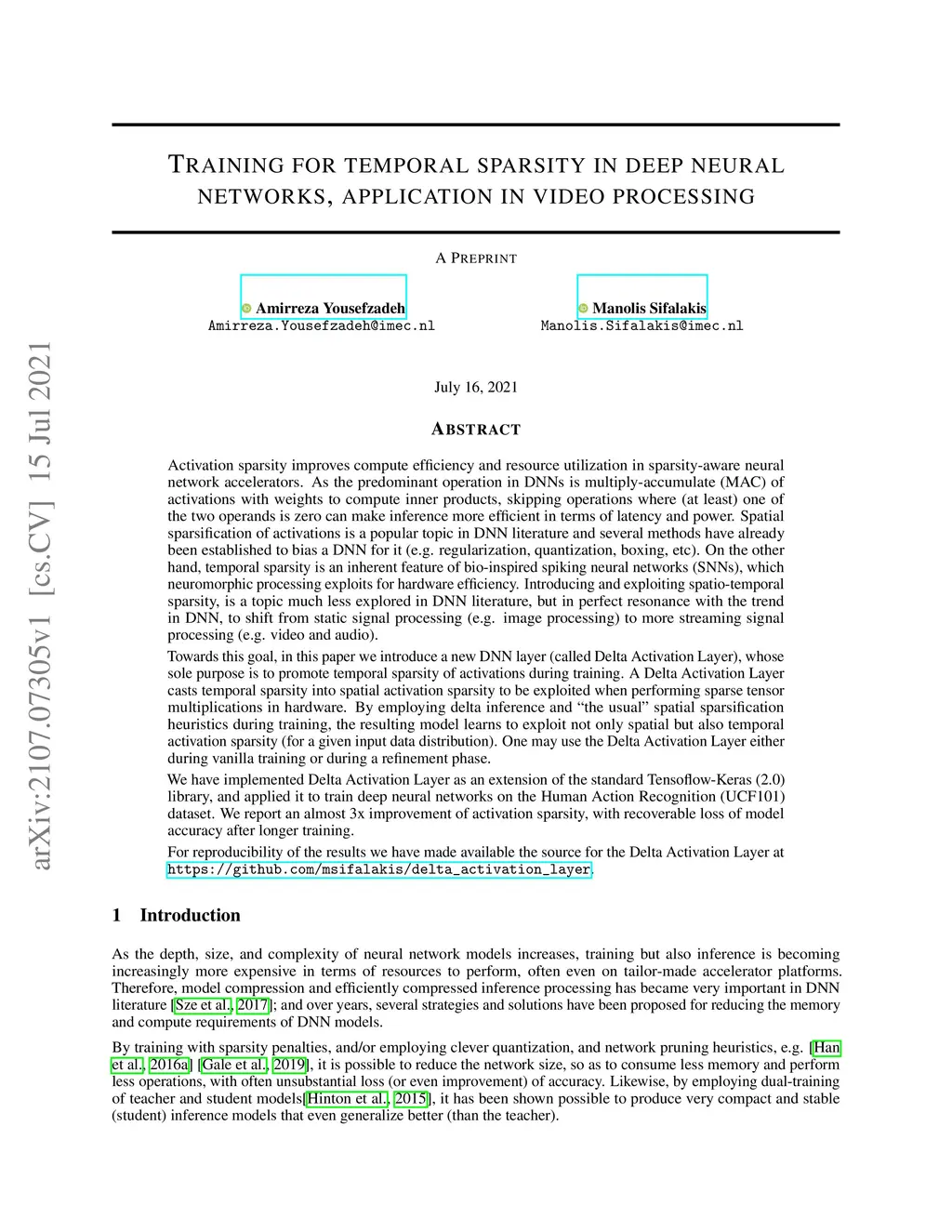 Activation sparsity improves compute efficiency and resource utilization in sparsity-aware neural network accelerators. As the predominant operation in DNNs is multiply-accumulate (MAC) of activations with weights to compute inner products, skipping operations where (at least) one of the two operands is zero can make inference more efficient in terms of latency and power. Spatial sparsification of activations is a popular topic in DNN literature and several methods have already been established to bias a DNN for it. On the other hand, temporal sparsity is an inherent feature of bio-inspired spiking neural networks (SNNs), which neuromorphic processing exploits for hardware efficiency. Introducing and exploiting spatio-temporal sparsity, is a topic much less explored in DNN literature, but in perfect resonance with the trend in DNN, to shift from static signal processing to more streaming signal processing. Towards this goal, in this paper we introduce a new DNN layer (called Delta Activation Layer), whose sole purpose is to promote temporal sparsity of activations during training. A Delta Activation Layer casts temporal sparsity into spatial activation sparsity to be exploited when performing sparse tensor multiplications in hardware. By employing delta inference and ``the usual'' spatial sparsification heuristics during training, the resulting model learns to exploit not only spatial but also temporal activation sparsity (for a given input data distribution). One may use the Delta Activation Layer either during vanilla training or during a refinement phase. We have implemented Delta Activation Layer as an extension of the standard Tensoflow-Keras library, and applied it to train deep neural networks on the Human Action Recognition (UCF101) dataset. We report an almost 3x improvement of activation sparsity, with recoverable loss of model accuracy after longer training.