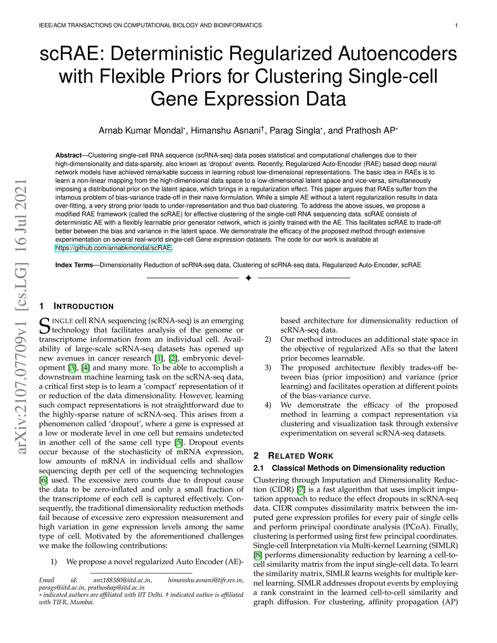Clustering single-cell RNA sequence (scRNA-seq) data poses statistical and computational challenges due to their high-dimensionality and data-sparsity, also known as `dropout' events. Recently, Regularized Auto-Encoder (RAE) based deep neural network models have achieved remarkable success in learning robust low-dimensional representations. The basic idea in RAEs is to learn a non-linear mapping from the high-dimensional data space to a low-dimensional latent space and vice-versa, simultaneously imposing a distributional prior on the latent space, which brings in a regularization effect. This paper argues that RAEs suffer from the infamous problem of bias-variance trade-off in their naive formulation. While a simple AE without a latent regularization results in data over-fitting, a very strong prior leads to under-representation and thus bad clustering. To address the above issues, we propose a modified RAE framework (called the scRAE) for effective clustering of the single-cell RNA sequencing data. scRAE consists of deterministic AE with a flexibly learnable prior generator network, which is jointly trained with the AE. This facilitates scRAE to trade-off better between the bias and variance in the latent space. We demonstrate the efficacy of the proposed method through extensive experimentation on several real-world single-cell Gene expression datasets.