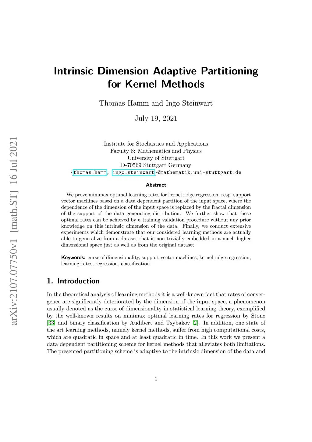Intrinsic Dimension Adaptive Partitioning for Kernel Methods