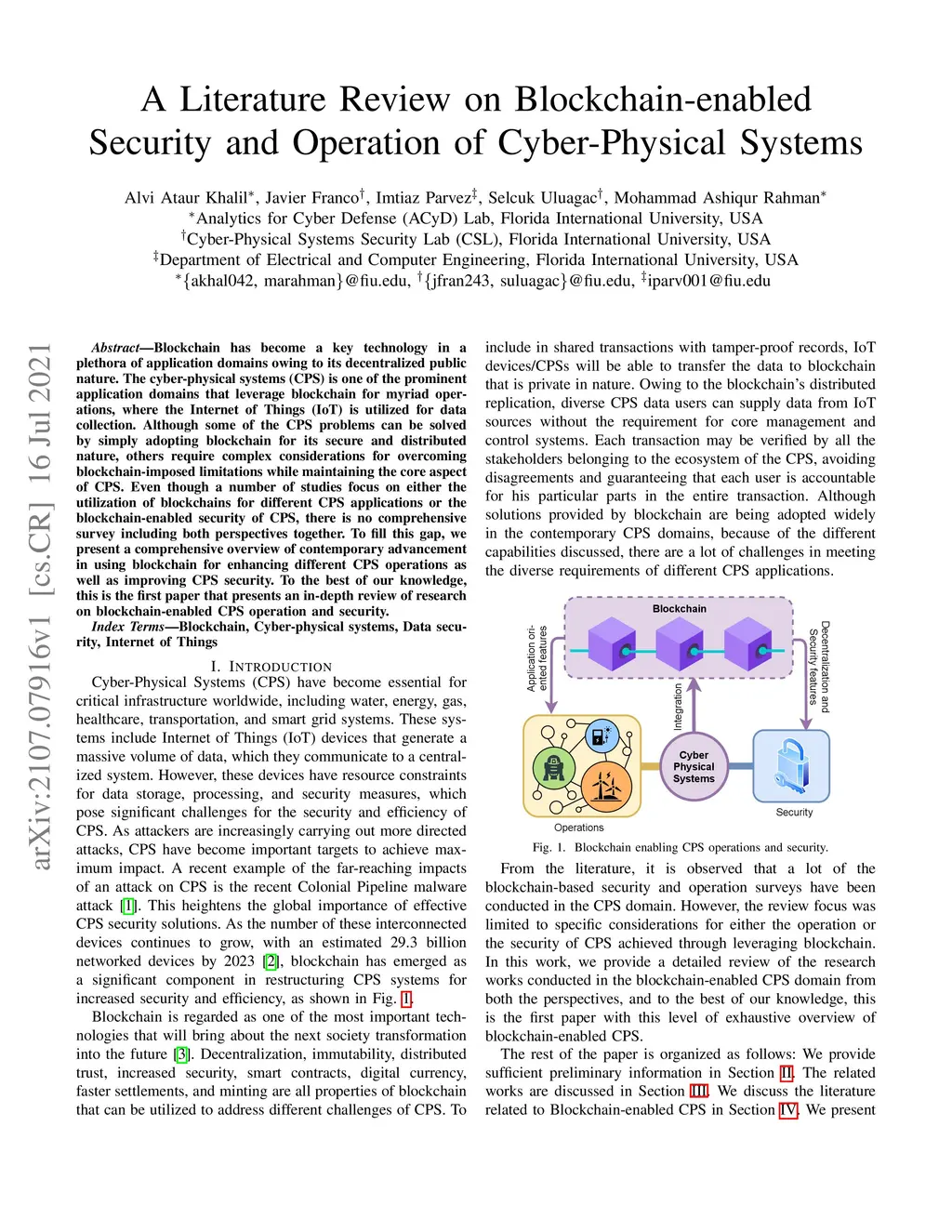 Blockchain has become a key technology in a plethora of application domains owing to its decentralized public nature. The cyber-physical systems (CPS) is one of the prominent application domains that leverage blockchain for myriad operations, where the Internet of Things (IoT) is utilized for data collection. Although some of the CPS problems can be solved by simply adopting blockchain for its secure and distributed nature, others require complex considerations for overcoming blockchain-imposed limitations while maintaining the core aspect of CPS. Even though a number of studies focus on either the utilization of blockchains for different CPS applications or the blockchain-enabled security of CPS, there is no comprehensive survey including both perspectives together. To fill this gap, we present a comprehensive overview of contemporary advancement in using blockchain for enhancing different CPS operations as well as improving CPS security. To the best of our knowledge, this is the first paper that presents an in-depth review of research on blockchain-enabled CPS operation and security.