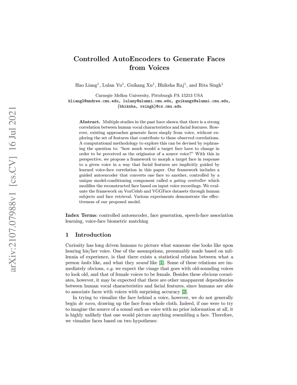 Controlled AutoEncoders to Generate Faces from Voices