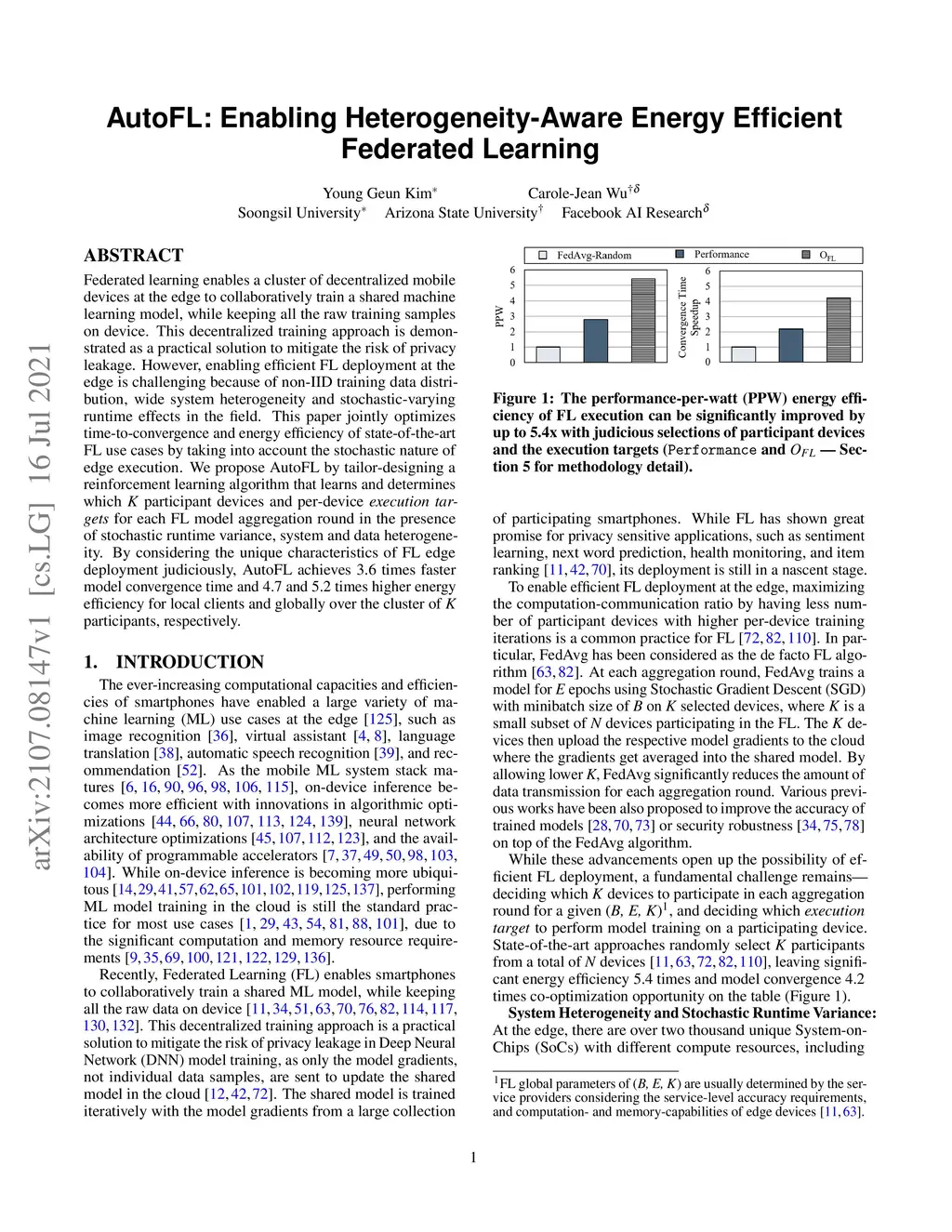 AutoFL: Enabling Heterogeneity-Aware Energy Efficient Federated Learning
