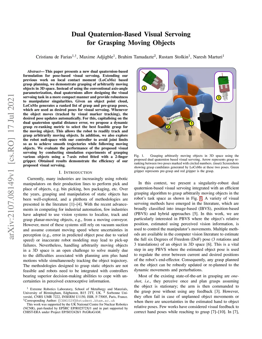 Dual Quaternion-Based Visual Servoing for Grasping Moving Objects