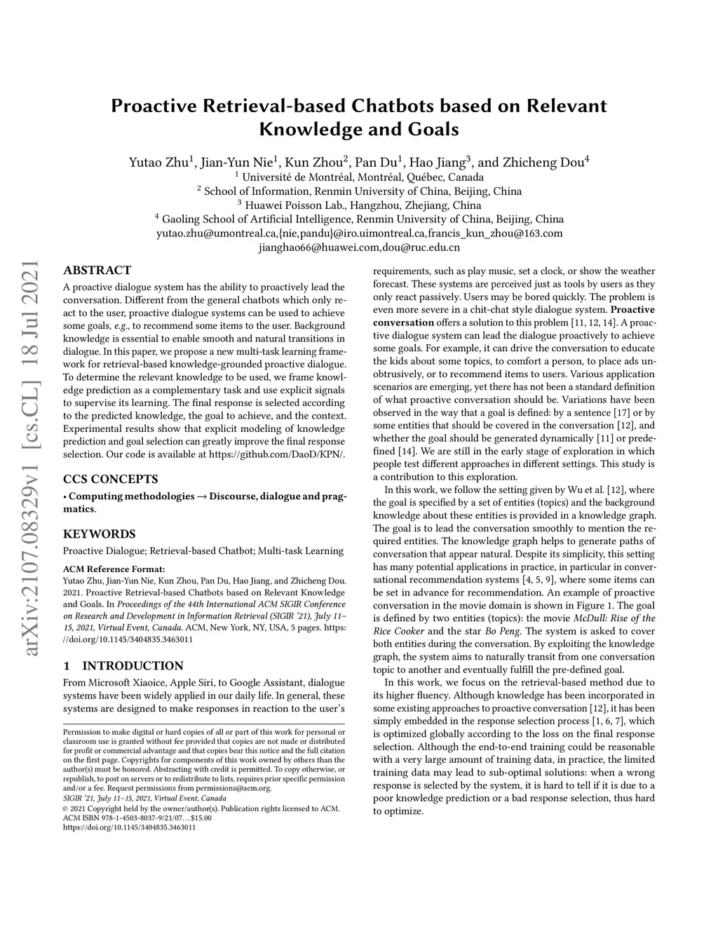 Proactive Retrieval-based Chatbots based on Relevant Knowledge and Goals