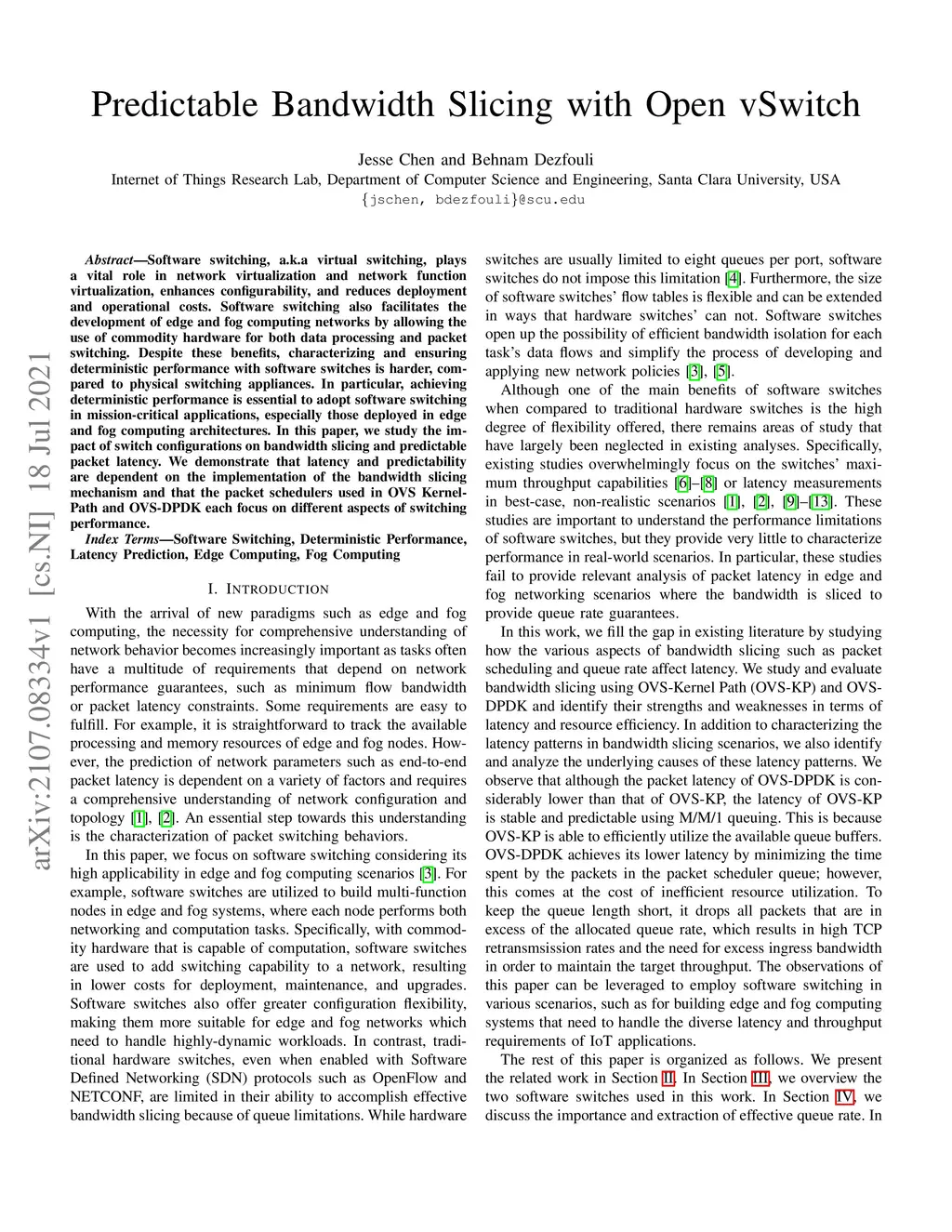Software switching, a.k.a virtual switching, plays a vital role in network virtualization and network function virtualization, enhances configurability, and reduces deployment and operational costs. Software switching also facilitates the development of edge and fog computing networks by allowing the use of commodity hardware for both data processing and packet switching. Despite these benefits, characterizing and ensuring deterministic performance with software switches is harder, compared to physical switching appliances. In particular, achieving deterministic performance is essential to adopt software switching in mission-critical applications, especially those deployed in edge and fog computing architectures. In this paper, we study the impact of switch configurations on bandwidth slicing and predictable packet latency. We demonstrate that latency and predictability are dependent on the implementation of the bandwidth slicing mechanism and that the packet schedulers used in OVS Kernel-Path and OVS-DPDK each focus on different aspects of switching performance.