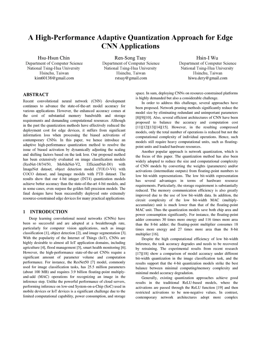 A High-Performance Adaptive Quantization Approach for Edge CNN