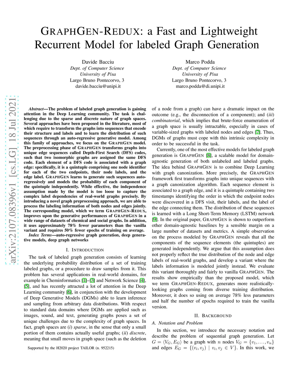 GraphGen-Redux: a Fast and Lightweight Recurrent Model for labeled Graph