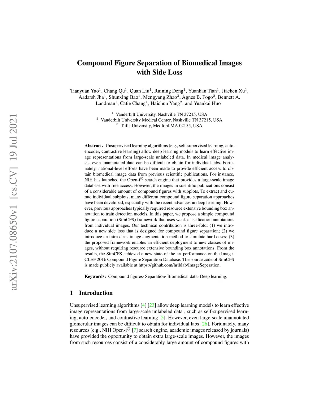 Compound Figure Separation of Biomedical Images with Side Loss