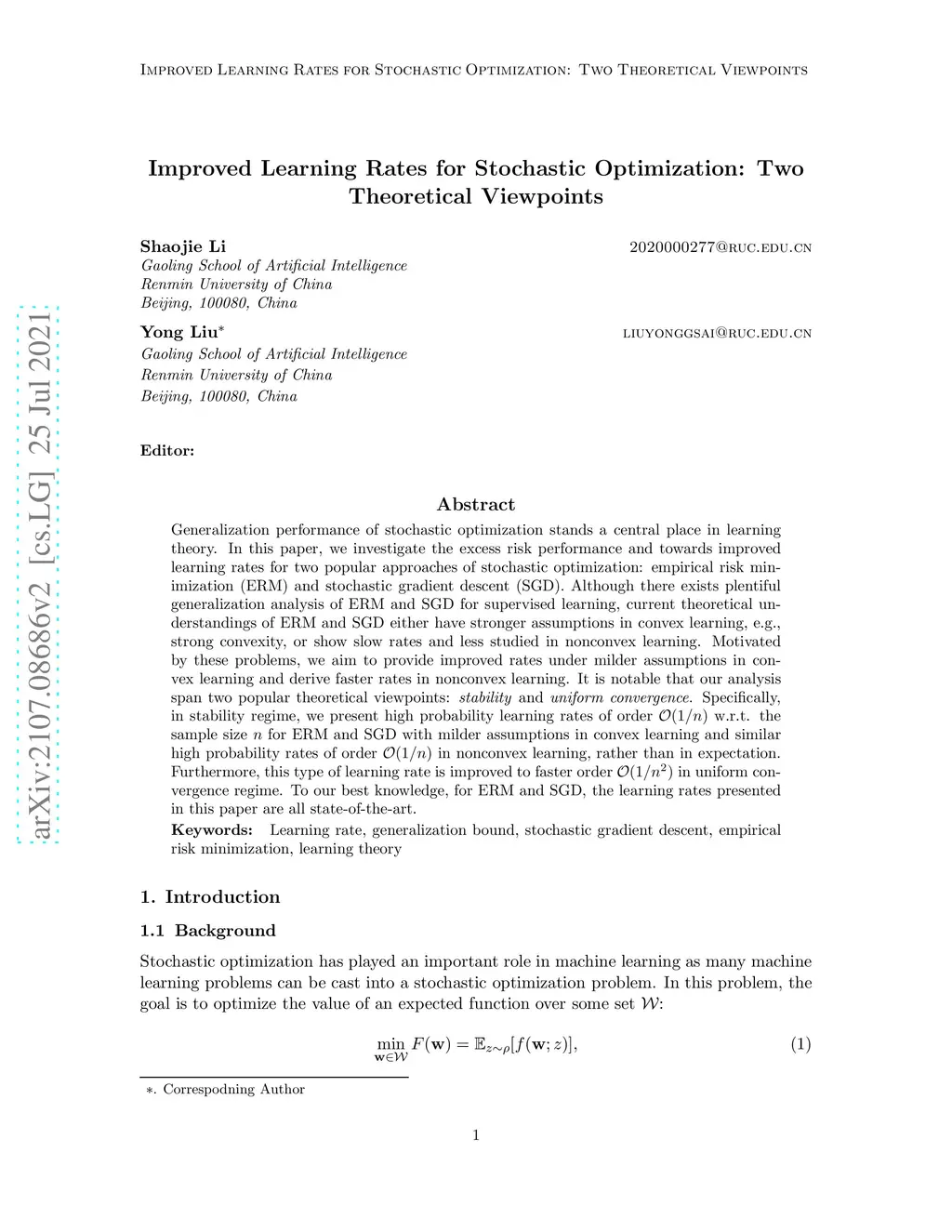 Improved Learning Rates for Stochastic Optimization: Two Theoretical