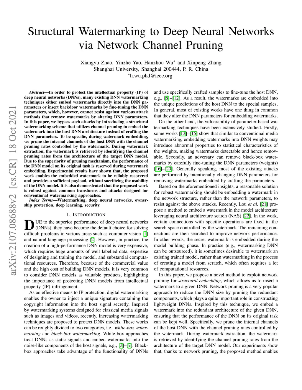 Structural Watermarking to Deep Neural Networks via Network Channel