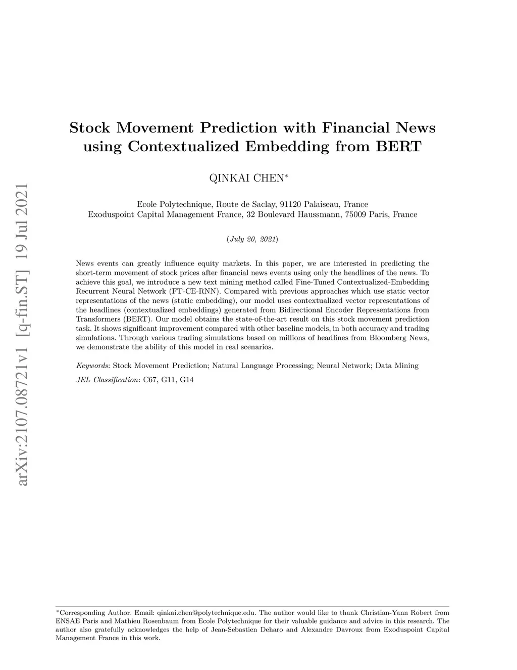 Stock Movement Prediction with Financial News using Contextualized