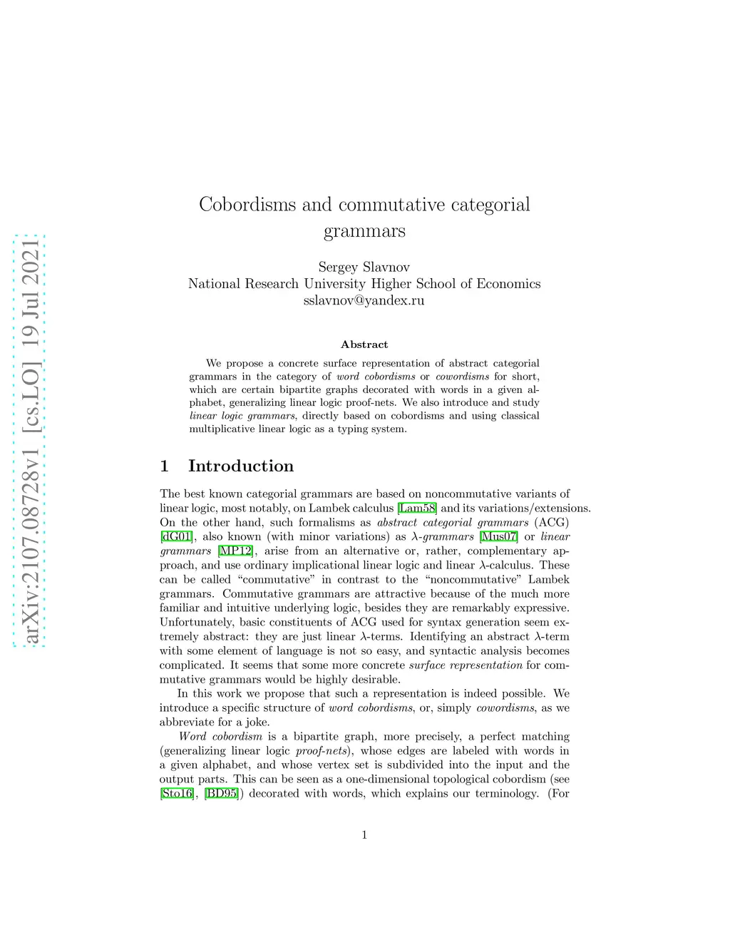 We propose a concrete surface representation of abstract categorial grammars in the category of word cobordisms or cowordisms for short, which are certain bipartite graphs decorated with words in a given alphabet, generalizing linear logic proof-nets. We also introduce and study linear logic grammars, directly based on cobordisms and using classical multiplicative linear logic as a typing system.