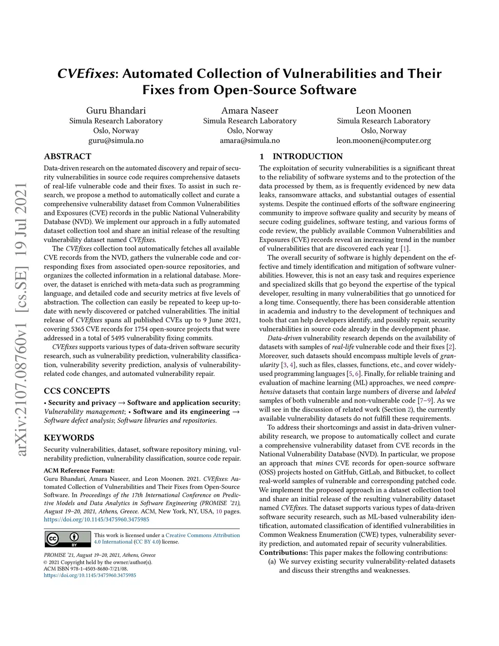CVEfixes: Automated Collection of Vulnerabilities and Their Fixes from