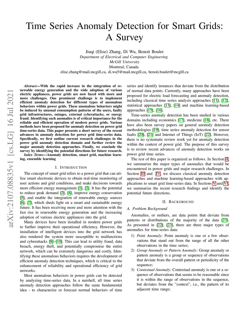 Time Series Anomaly Detection for Smart Grids: A Survey