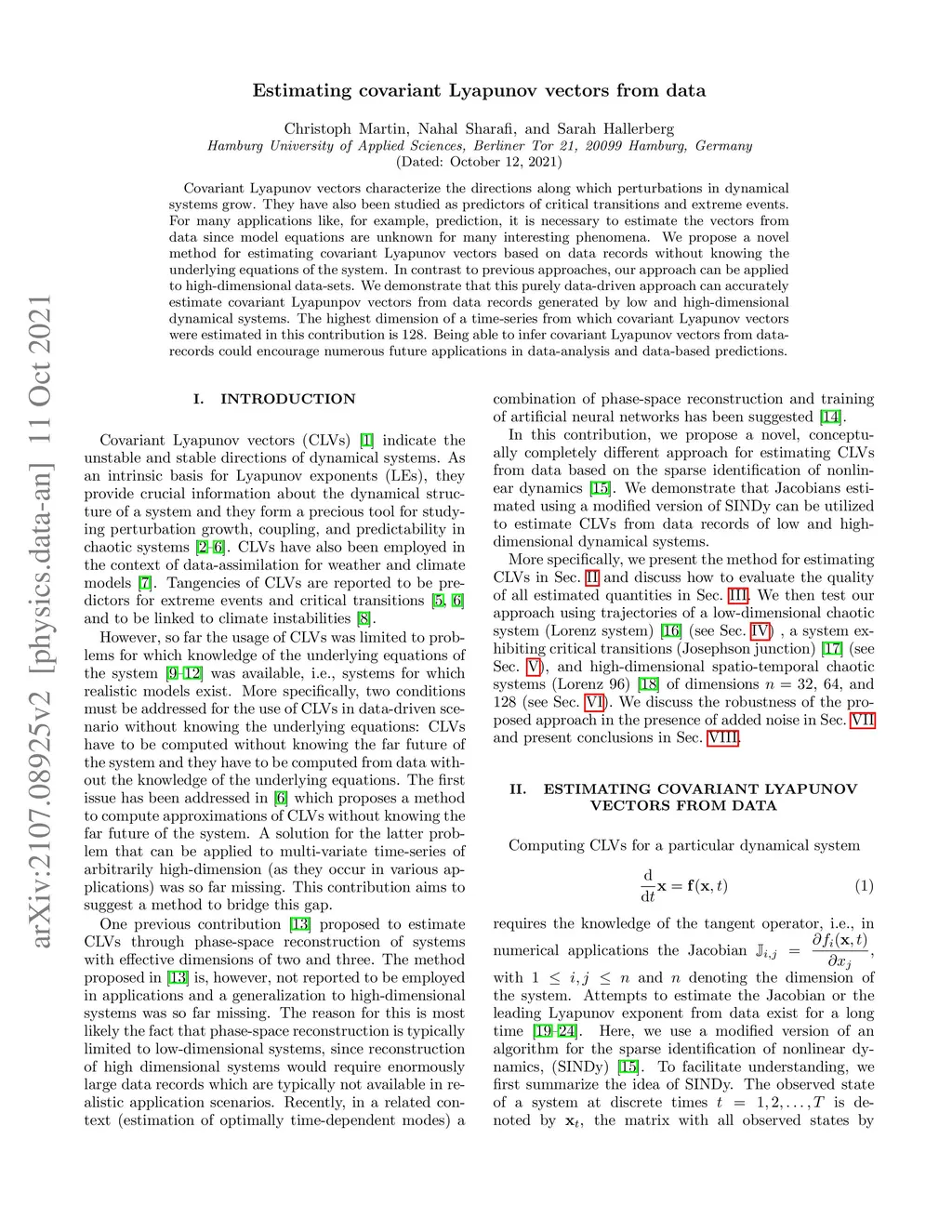 Estimating covariant Lyapunov vectors from data
