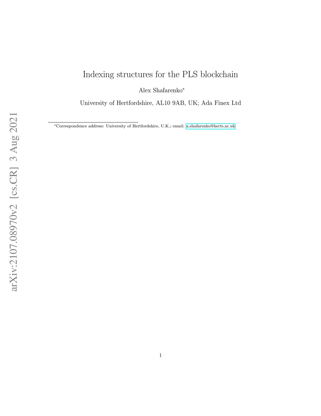 This paper studies known indexing structures from a new point of view: minimisation of data exchange between an IoT device acting as a blockchain client and the blockchain server running a protocol suite that includes two Guy Fawkes protocols, PLS and SLVP. The PLS blockchain is not a cryptocurrency instrument; it is an immutable ledger offering guaranteed non-repudiation to low-power clients without use of public key crypto. The novelty of the situation is in the fact that every PLS client has to obtain a proof of absence in all blocks of the chain to which its counterparty does not contribute, and we show that it is possible without traversing the block's Merkle tree. We obtain weight statistics of a leaf path on a sparse Merkle tree theoretically, as our ground case. Using the theory we quantify the communication cost of a client interacting with the blockchain. We show that large savings can be achieved by providing a bitmap index of the tree compressed using Tunstall's method. We further show that even in the case of correlated access, as in two IoT devices posting messages for each other in consecutive blocks, it is possible to prevent compression degradation by re-randomising the IDs using a pseudorandom bijective function. We propose a low-cost function of this kind and evaluate its quality by simulation, using the avalanche criterion.