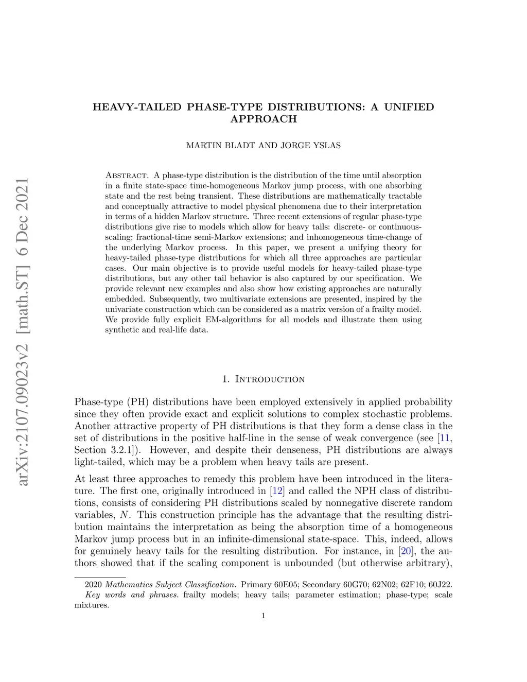 A phase-type distribution is the distribution of the time until absorption in a finite state-space time-homogeneous Markov jump process, with one absorbing state and the rest being transient. These distributions are mathematically tractable and conceptually attractive to model physical phenomena due to their interpretation in terms of a hidden Markov structure. Three recent extensions of regular phase-type distributions give rise to models which allow for heavy tails: discrete- or continuous-scaling; fractional-time semi-Markov extensions; and inhomogeneous time-change of the underlying Markov process. In this paper, we present a unifying theory for heavy-tailed phase-type distributions for which all three approaches are particular cases. Our main objective is to provide useful models for heavy-tailed phase-type distributions, but any other tail behavior is also captured by our specification. We provide relevant new examples and also show how existing approaches are naturally embedded. Subsequently, two multivariate extensions are presented, inspired by the univariate construction which can be considered as a matrix version of a frailty model. We provide fully explicit EM-algorithms for all models and illustrate them using synthetic and real-life data.
