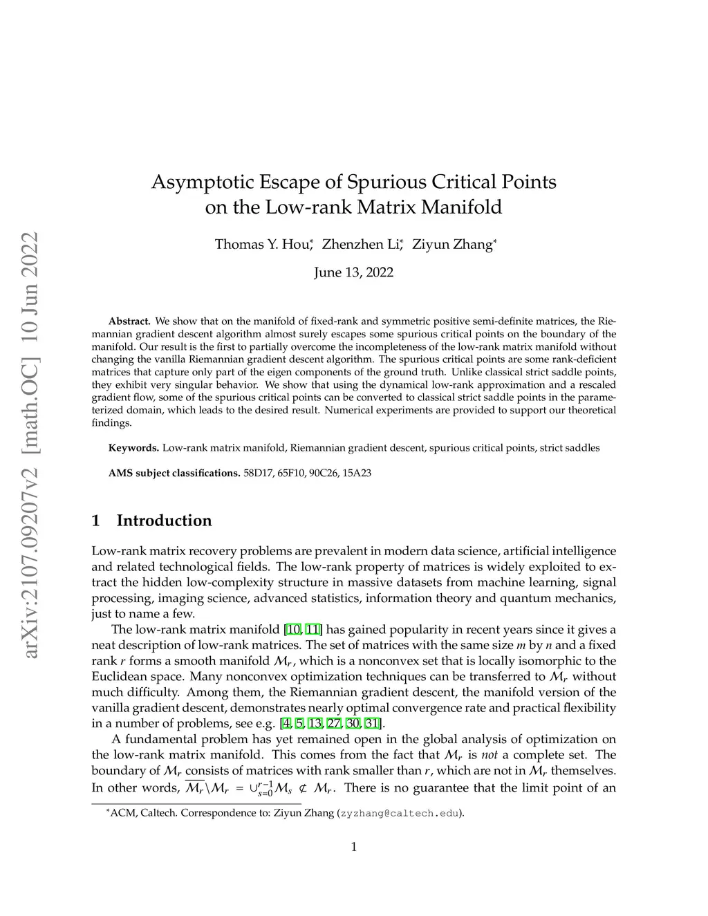Asymptotic Escape of Spurious Critical Points on the Low-rank Matrix