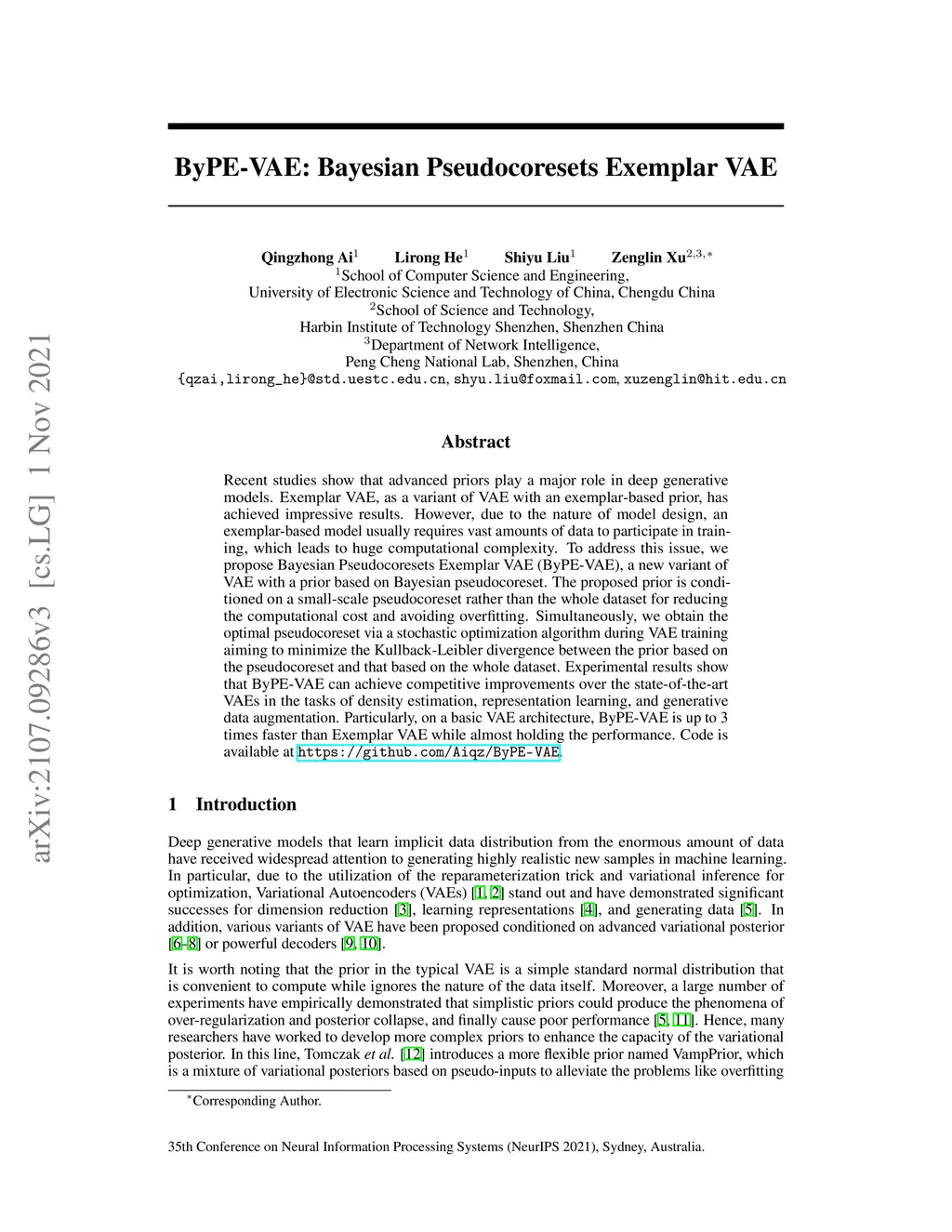 ByPE-VAE: Bayesian Pseudocoresets Exemplar VAE