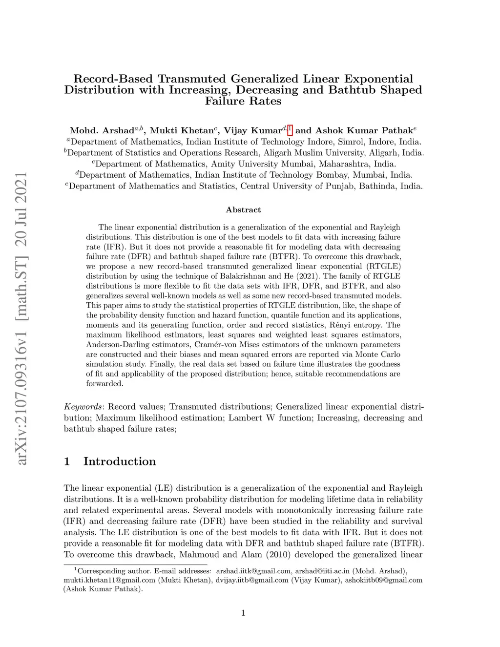 Increasing, Decreasing and Bathtub Shaped Failure Rates