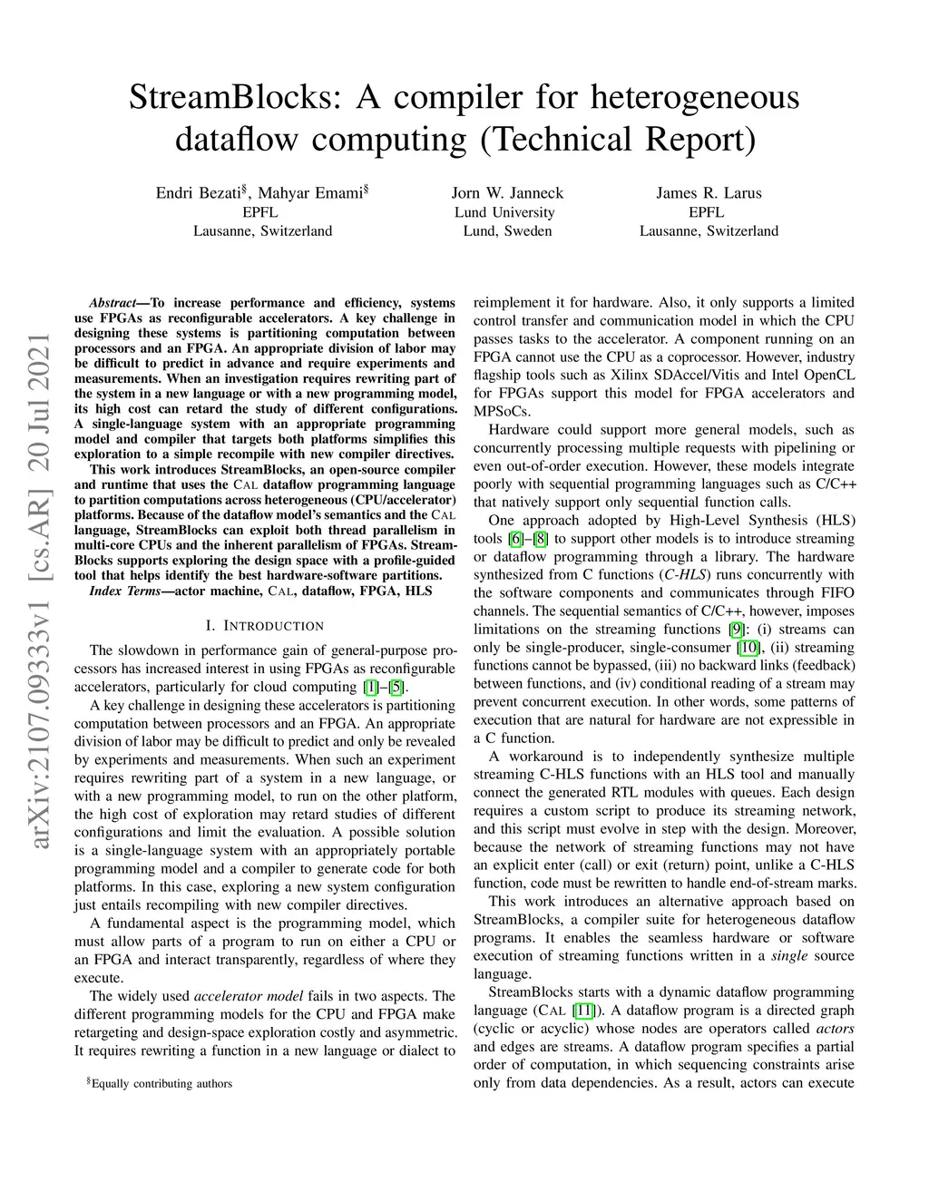 StreamBlocks: A compiler for heterogeneous dataflow computing (technical
