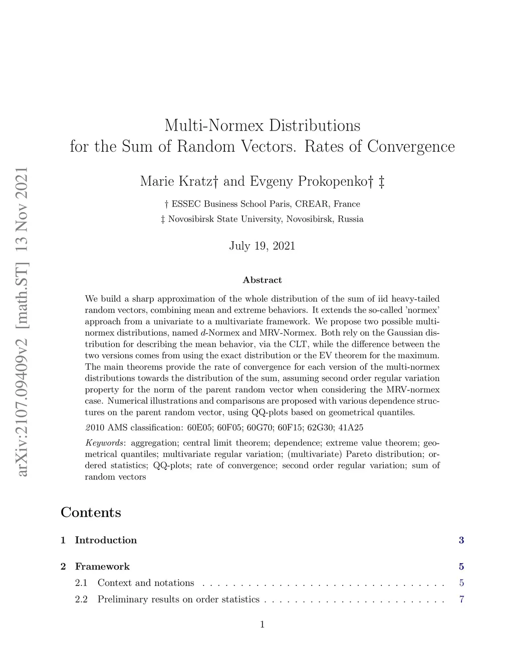 Multi-Normex Distributions for the Sum of Random Vectors. Rates of