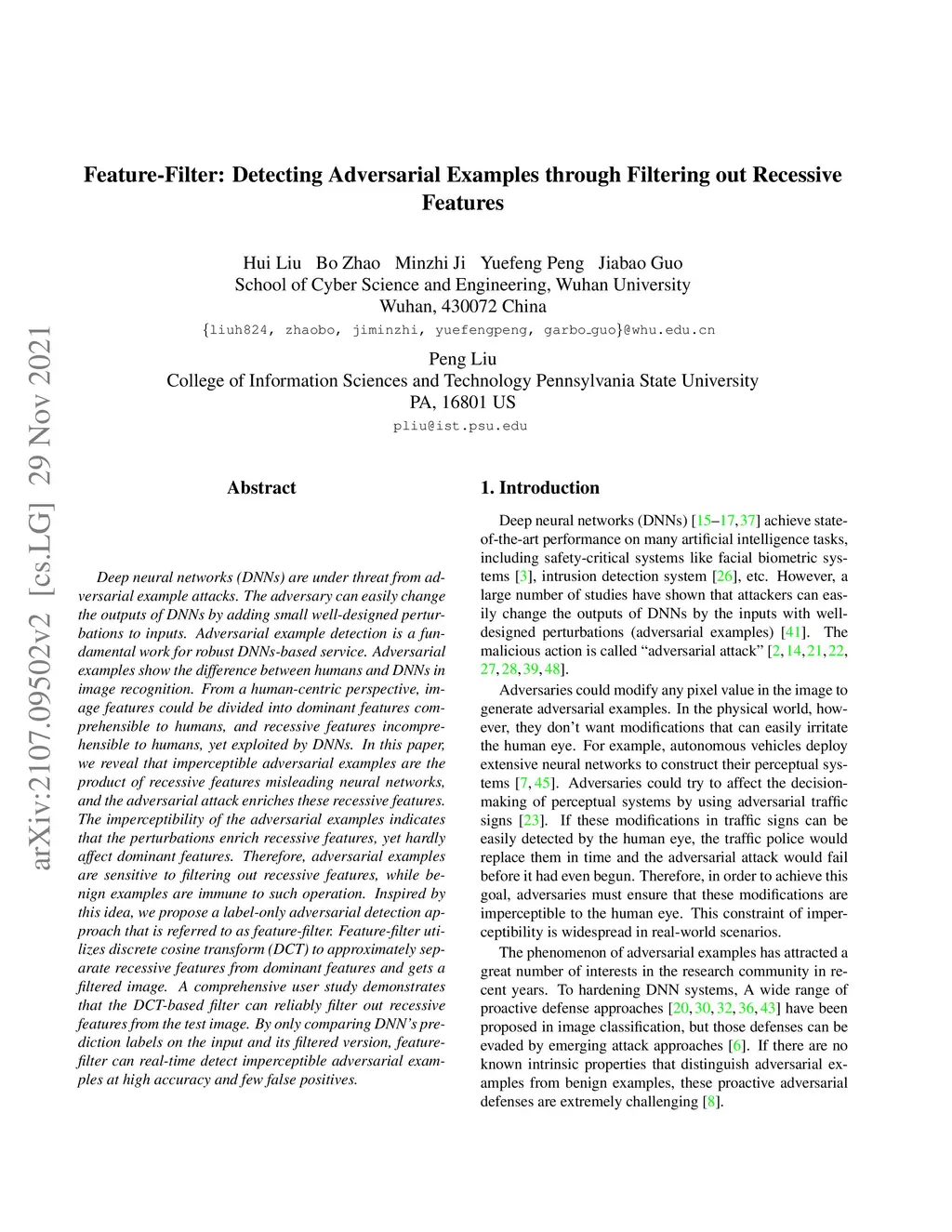 Feature-Filter: Detecting Adversarial Examples through Filtering off