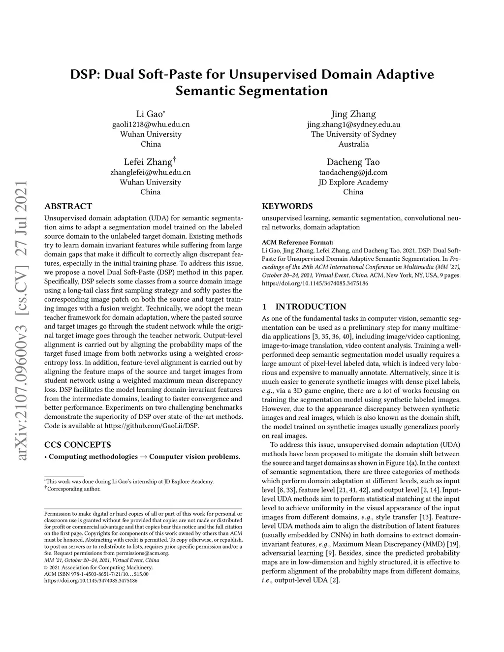 DSP: Dual Soft-Paste for Unsupervised Domain Adaptive Semantic