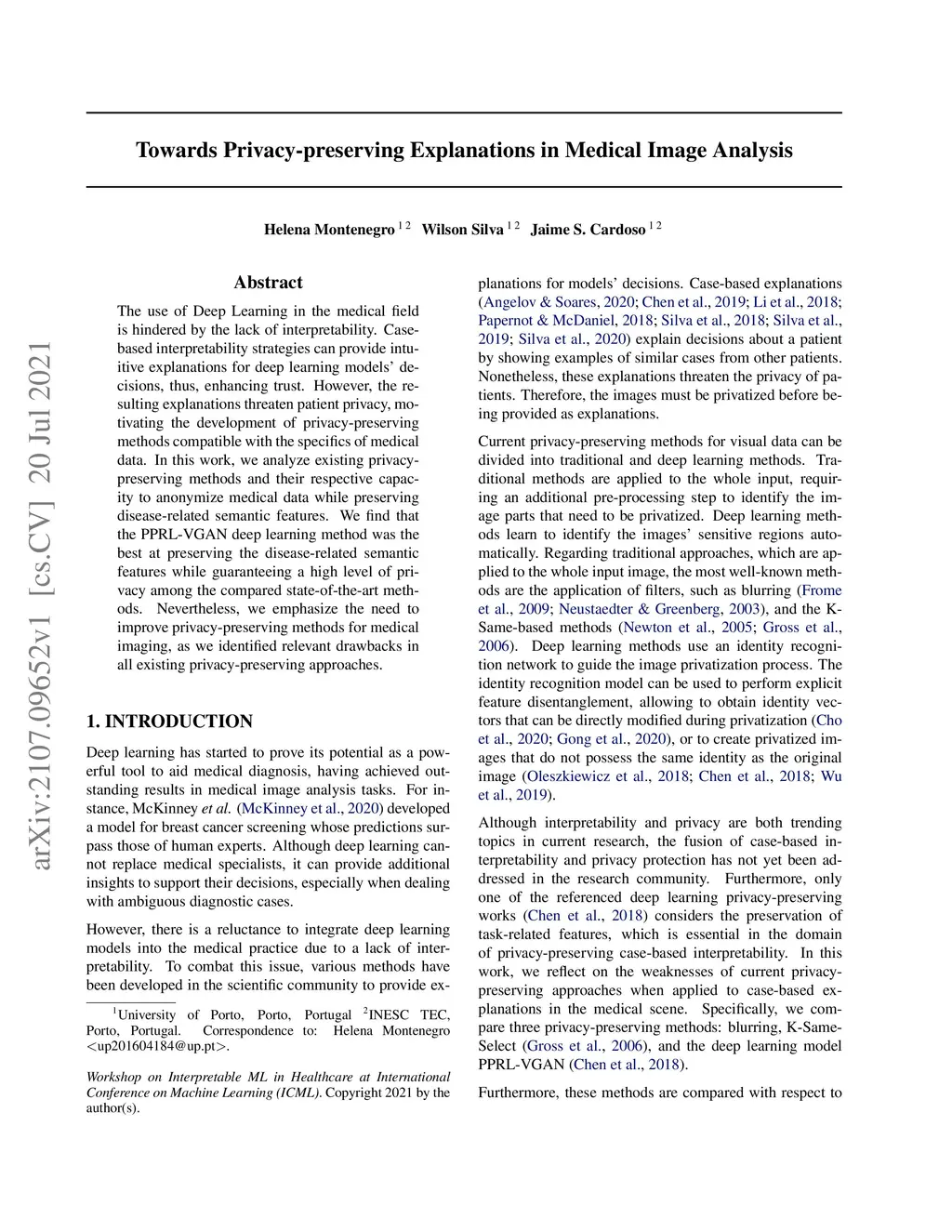 The use of Deep Learning in the medical field is hindered by the lack of interpretability. Case-based interpretability strategies can provide intuitive explanations for deep learning models' decisions, thus, enhancing trust. However, the resulting explanations threaten patient privacy, motivating the development of privacy-preserving methods compatible with the specifics of medical data. In this work, we analyze existing privacy-preserving methods and their respective capacity to anonymize medical data while preserving disease-related semantic features. We find that the PPRL-VGAN deep learning method was the best at preserving the disease-related semantic features while guaranteeing a high level of privacy among the compared state-of-the-art methods. Nevertheless, we emphasize the need to improve privacy-preserving methods for medical imaging, as we identified relevant drawbacks in all existing privacy-preserving approaches.