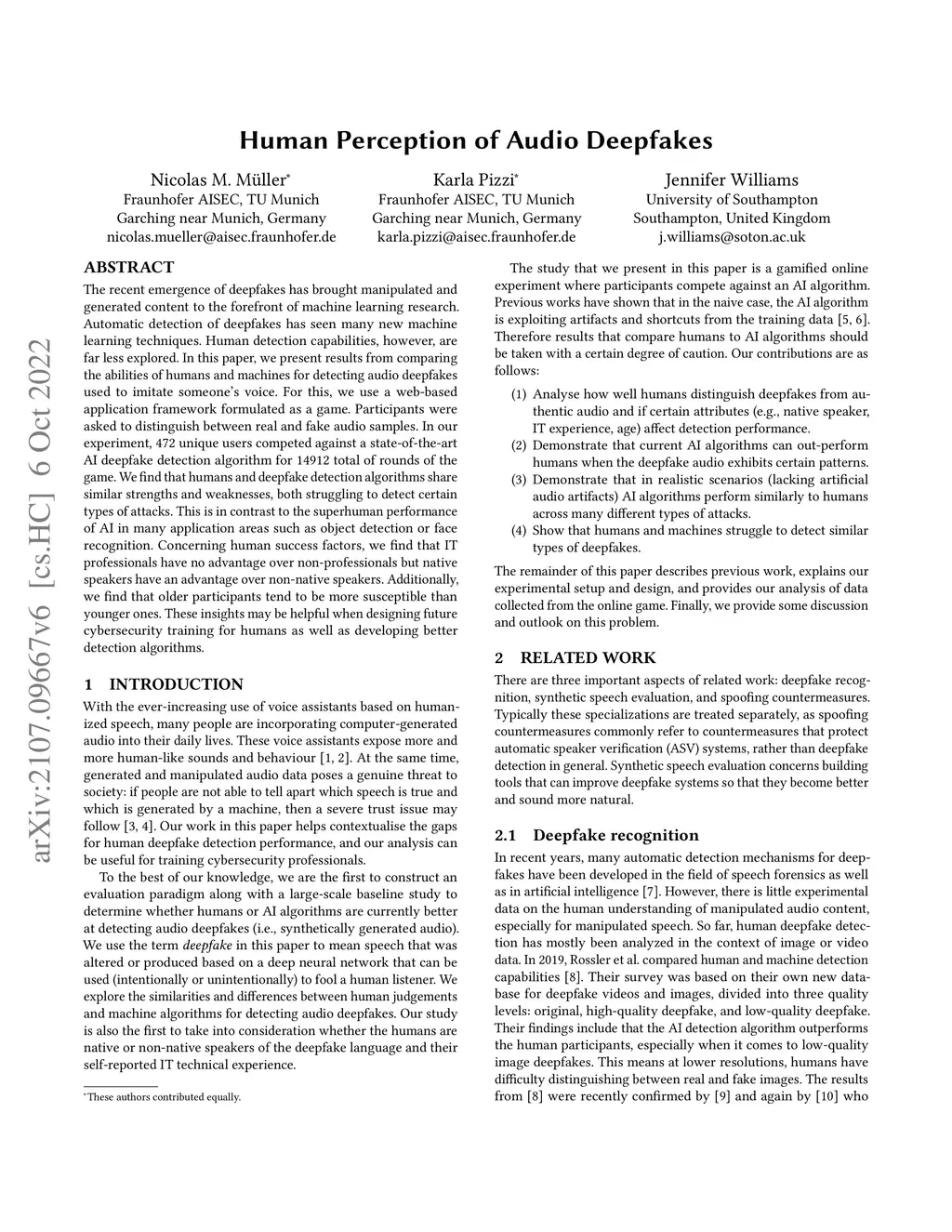 Human Perception of Audio Deepfakes
