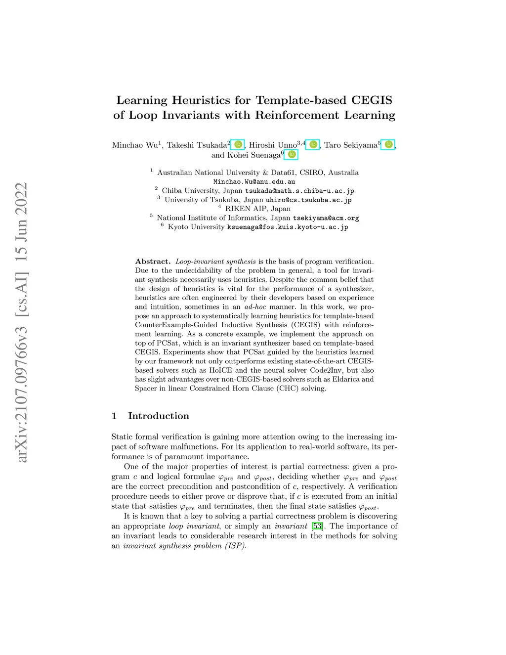 Loop-invariant synthesis is the basis of program verification. Due to the undecidability of the problem in general, a tool for invariant synthesis necessarily uses heuristics. Despite the common belief that the design of heuristics is vital for the performance of a synthesizer, heuristics are often engineered by their developers based on experience and intuition, sometimes in an \emph{ad-hoc} manner. In this work, we propose an approach to systematically learning heuristics for template-based CounterExample-Guided Inductive Synthesis (CEGIS) with reinforcement learning. As a concrete example, we implement the approach on top of PCSat, which is an invariant synthesizer based on template-based CEGIS. Experiments show that PCSat guided by the heuristics learned by our framework not only outperforms existing state-of-the-art CEGIS-based solvers such as HoICE and the neural solver Code2Inv, but also has slight advantages over non-CEGIS-based solvers such as Eldarica and Spacer in linear Constrained Horn Clause (CHC) solving.