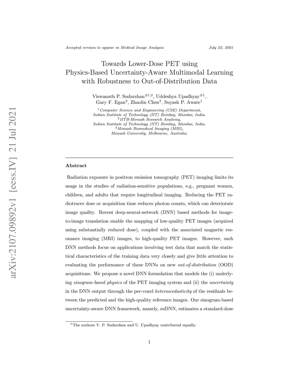 Towards Lower-Dose PET using Physics-Based Uncertainty-Aware Multimodal
