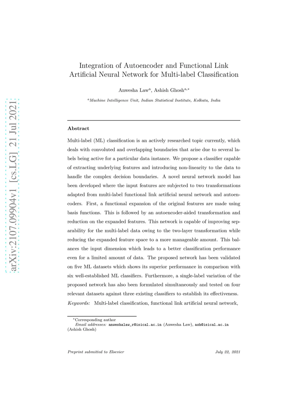 Integration of Autoencoder and Functional Link Artificial Neural Network