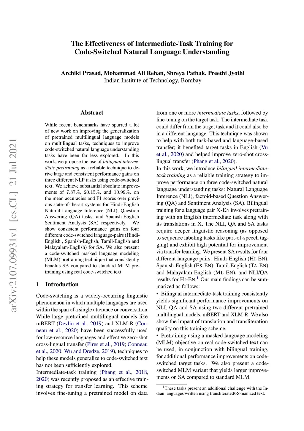 The Effectiveness of Intermediate-Task Training for Code-Switched