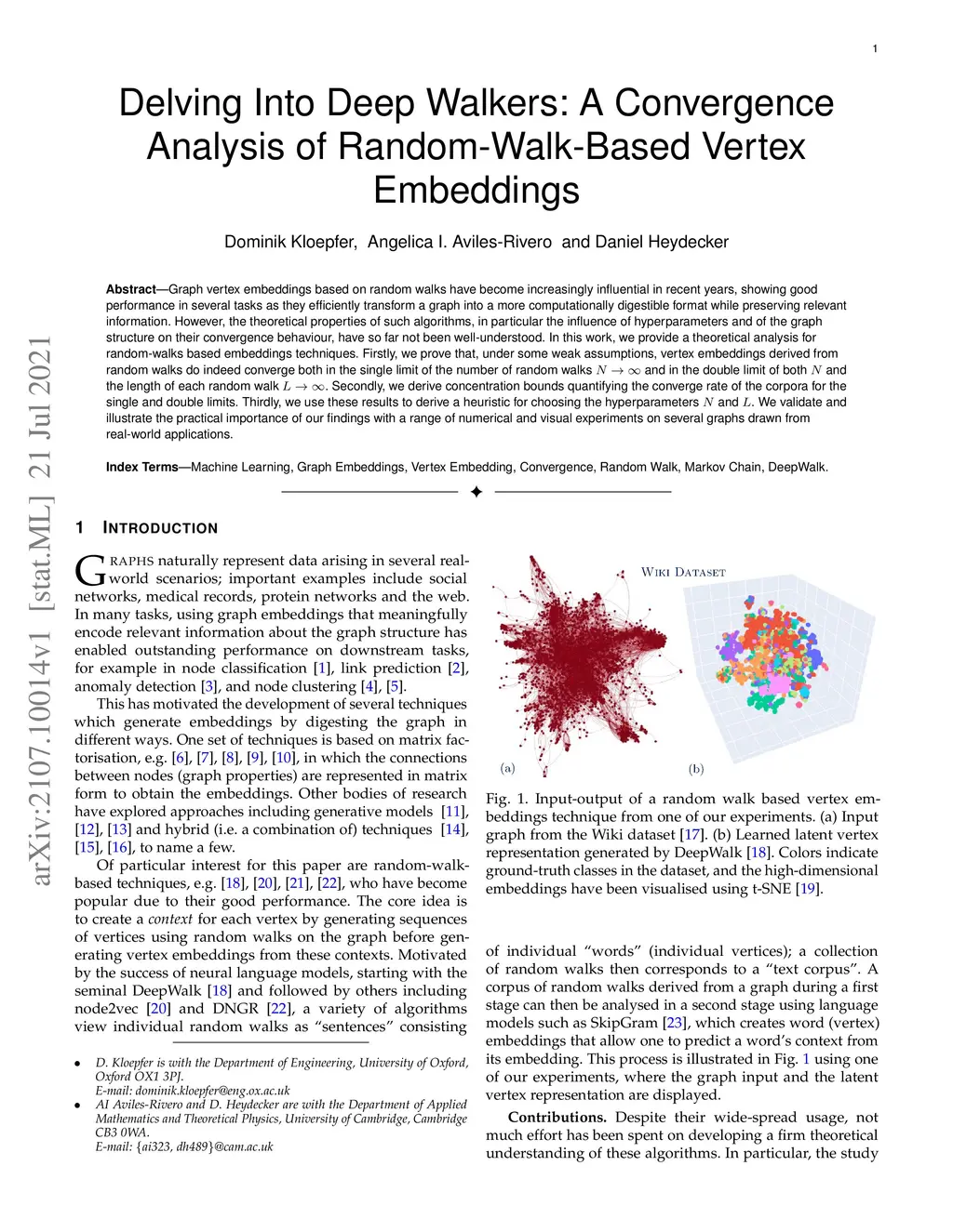 Graph vertex embeddings based on random walks have become increasingly influential in recent years, showing good performance in several tasks as they efficiently transform a graph into a more computationally digestible format while preserving relevant information. However, the theoretical properties of such algorithms, in particular the influence of hyperparameters and of the graph structure on their convergence behaviour, have so far not been well-understood. In this work, we provide a theoretical analysis for random-walks based embeddings techniques. Firstly, we prove that, under some weak assumptions, vertex embeddings derived from random walks do indeed converge both in the single limit of the number of random walks and in the double limit of both and the length of each random walk . Secondly, we derive concentration bounds quantifying the converge rate of the corpora for the single and double limits. Thirdly, we use these results to derive a heuristic for choosing the hyperparameters and . We validate and illustrate the practical importance of our findings with a range of numerical and visual experiments on several graphs drawn from real-world applications.