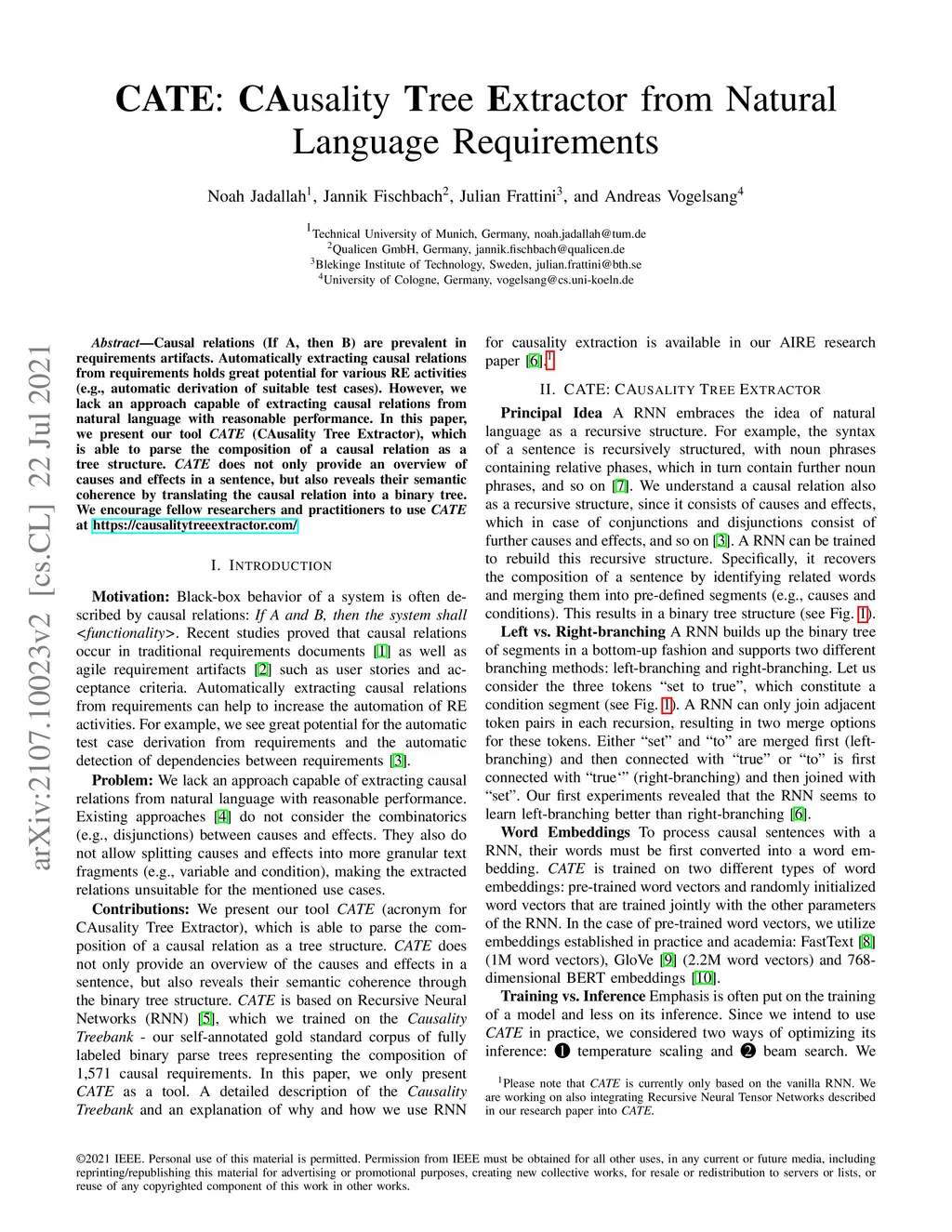 CATE: CAusality Tree Extractor from Natural Language Requirements