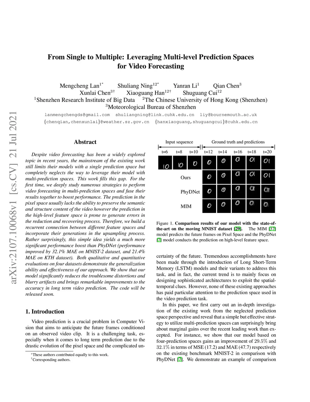 Despite video forecasting has been a widely explored topic in recent years, the mainstream of the existing work still limits their models with a single prediction space but completely neglects the way to leverage their model with multi-prediction spaces. This work fills this gap. For the first time, we deeply study numerous strategies to perform video forecasting in multi-prediction spaces and fuse their results together to boost performance. The prediction in the pixel space usually lacks the ability to preserve the semantic and structure content of the video however the prediction in the high-level feature space is prone to generate errors in the reduction and recovering process. Therefore, we build a recurrent connection between different feature spaces and incorporate their generations in the upsampling process. Rather surprisingly, this simple idea yields a much more significant performance boost than PhyDNet (performance improved by 32.1% MAE on MNIST-2 dataset, and 21.4% MAE on KTH dataset). Both qualitative and quantitative evaluations on four datasets demonstrate the generalization ability and effectiveness of our approach. We show that our model significantly reduces the troublesome distortions and blurry artifacts and brings remarkable improvements to the accuracy in long term video prediction. The code will be released soon.