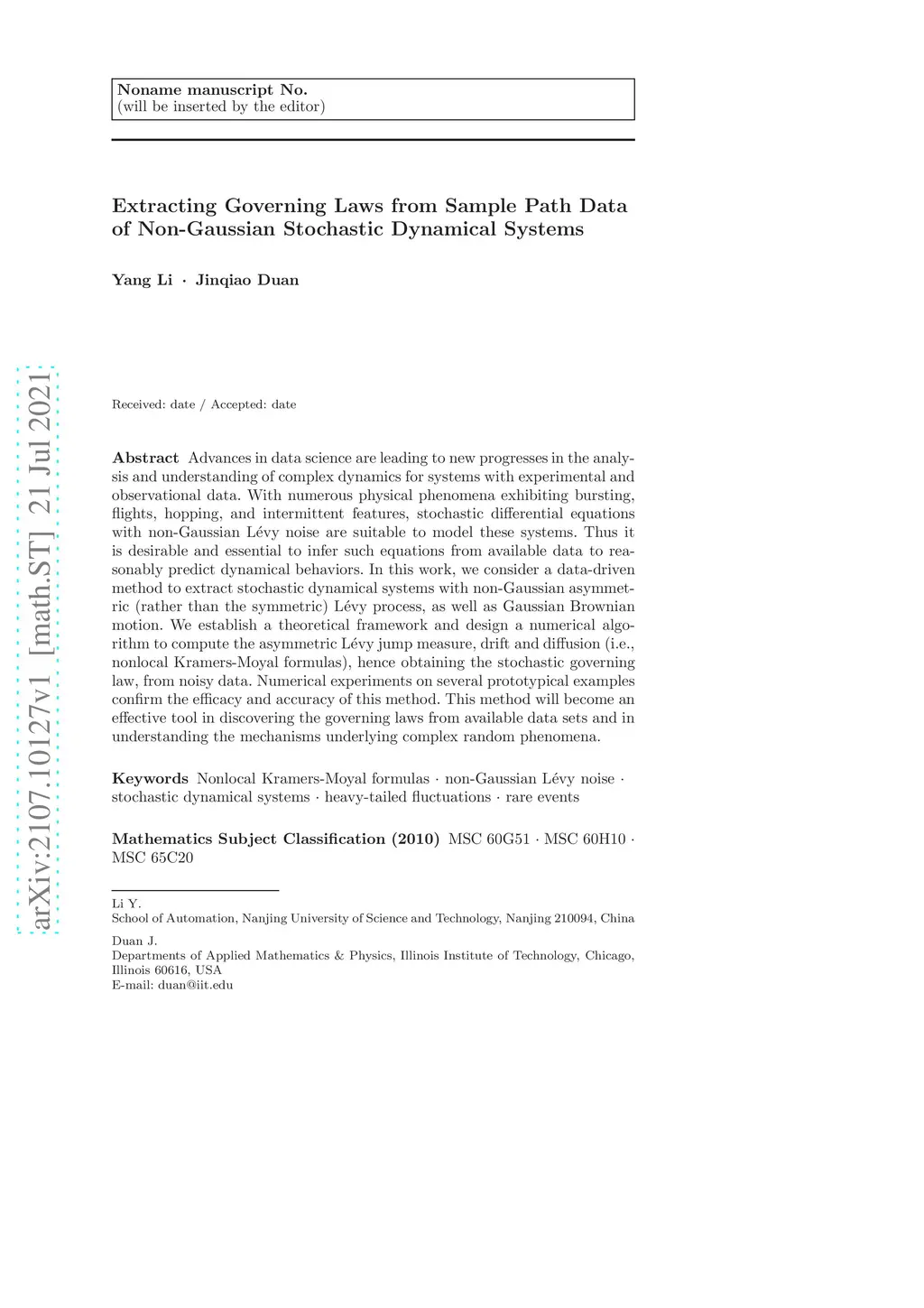 Extracting Governing Laws from Sample Path Data of Non-Gaussian