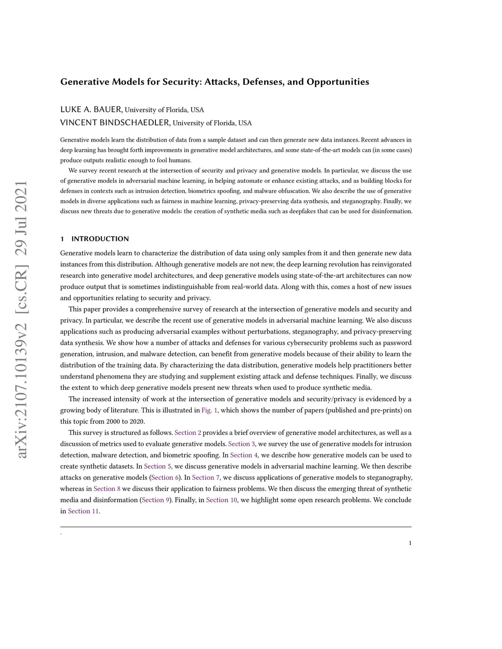 Generative Models for Security: Attacks, Defenses, and Opportunities