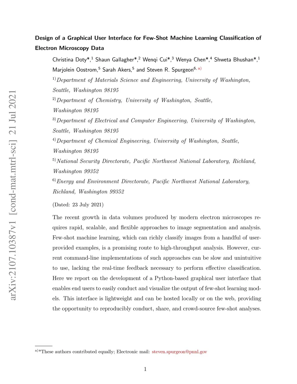 The recent growth in data volumes produced by modern electron microscopes requires rapid, scalable, and flexible approaches to image segmentation and analysis. Few-shot machine learning, which can richly classify images from a handful of user-provided examples, is a promising route to high-throughput analysis. However, current command-line implementations of such approaches can be slow and unintuitive to use, lacking the real-time feedback necessary to perform effective classification. Here we report on the development of a Python-based graphical user interface that enables end users to easily conduct and visualize the output of few-shot learning models. This interface is lightweight and can be hosted locally or on the web, providing the opportunity to reproducibly conduct, share, and crowd-source few-shot analyses.