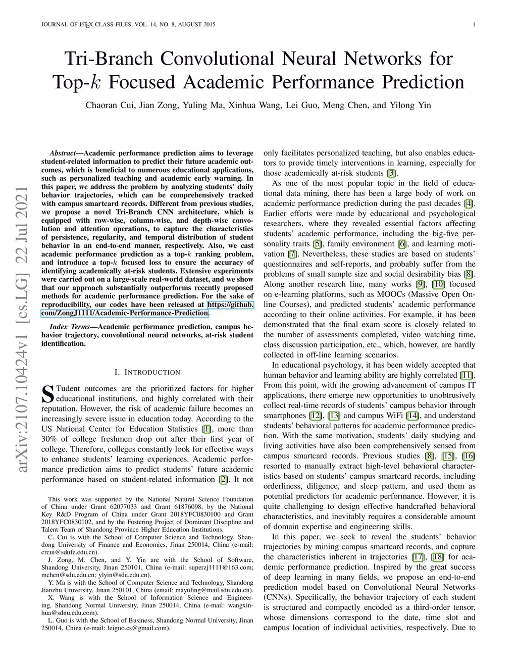 Tri-Branch Convolutional Neural Networks for Top- Focused Academic