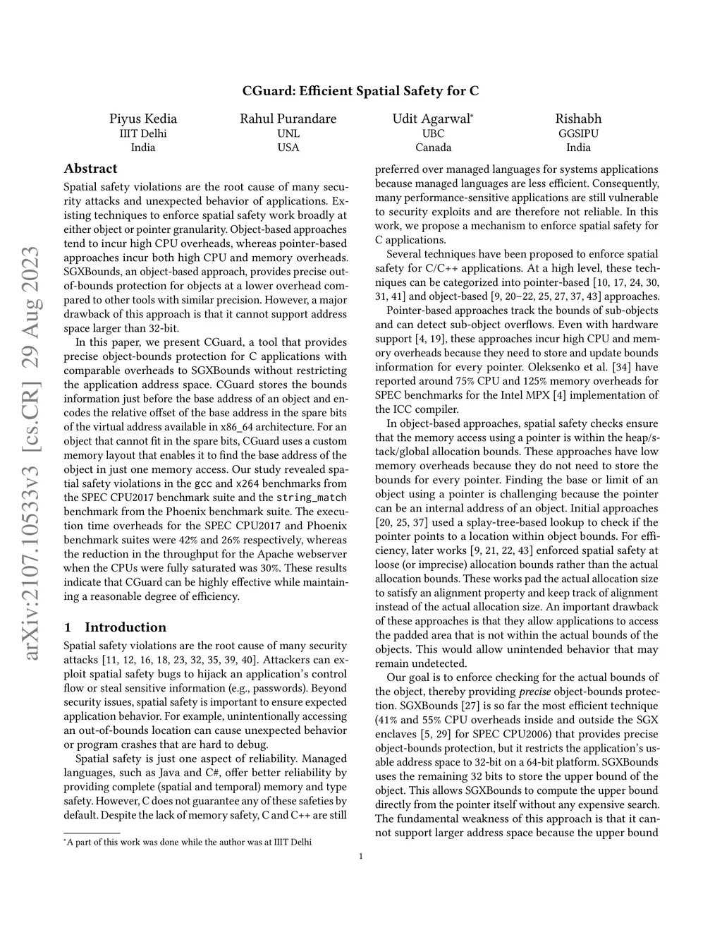 CGuard: Efficient Spatial Safety for C